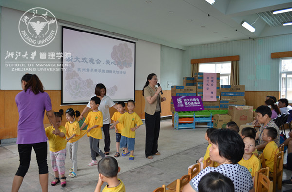 白墙上绘满七彩的图案,家长陪着孩子在房间里玩耍——这里不是幼儿园,而是孤独症智障儿童康复训练中心。上周末,管院EMBA俱乐部玫瑰会的女企业家们,在EMBA教育中心副主任黄月圆的带领下,把空调、玩具、书本等礼物送给了这里的孩子们。活动还得到了浙江省残联的关注和支持,浙江省残联党组副书记、副理事长、机关党委书记陈玉国与浙江省残联机关党委副书记张阳成也参加了活动。