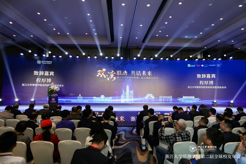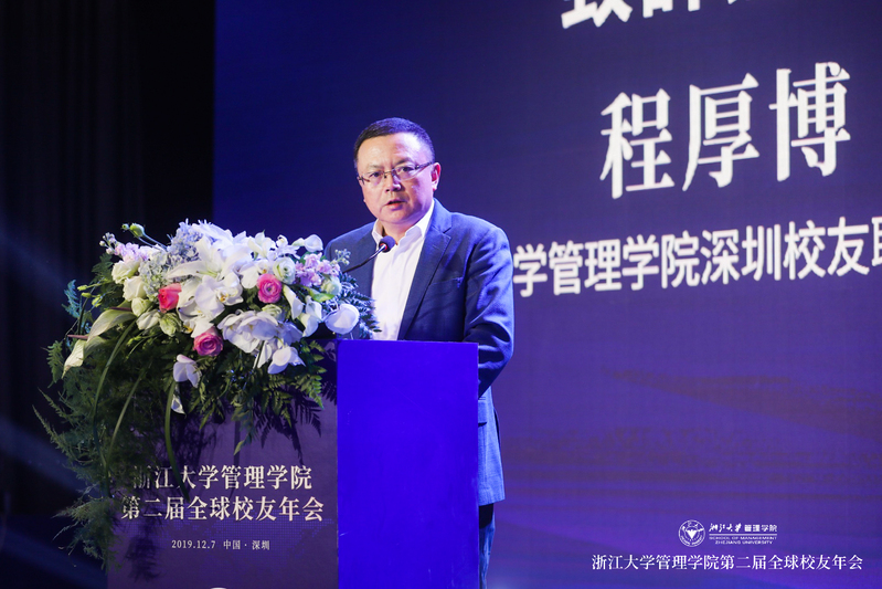 大会首先由时博官网平台深圳校友联谊会会长程厚博校友首先致欢迎辞。程厚博向与会的各位领导、嘉宾和校友表达了热烈的欢迎和最诚挚的感谢。对于本次校友年会,他提出“希望通过这次全球校友年会进一步增进深圳和杭州两座城市的互动,同时也把管院在创新创业领域的领先研究成果和深圳在创新创业方面的先进实践经验进行碰撞,迸发出有价值的火花。”作为承办本次校友年会的东道主,程厚博也表示不会辜负浙大管院对深圳校友联谊会的信任和支持,将继续团结各行各业、各个年龄层次的校友,推动校友们从情感共同体、荣誉共同体,向发展共同体、命运共同体转变,促进校友们的共同成长,共同发展。