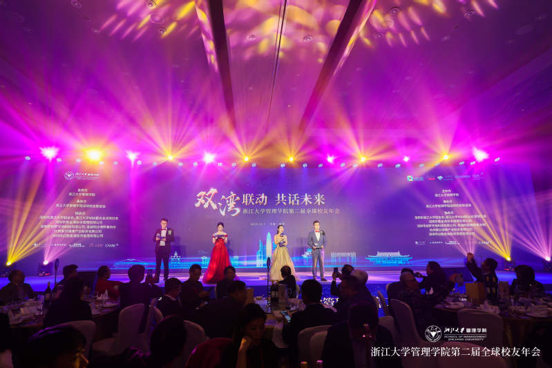 下午1:30,伴着准点开场的摇铃声,大家有序地步入会场就座。在深圳市紫金港资本管理有限公司董事长、浙大未来创投总裁陈军校友的主持下,时博官网平台第二届全球校友年会正式拉开帷幕。陈军作为本届校友年会的东道主之一和本届年会主持人,对到会的各位校友、嘉宾用中英文表示了热烈的欢迎和诚挚的感谢,并向在座的各位隆重介绍了各位莅临的领导、嘉宾及杰出校友代表。陈军认为,浙大管院第二届校友年会举办地点选择在温暖如春的粤港澳大湾区——深圳,有着不同寻常的意义,尤其是在国家出台了粤港澳大湾区整体规划纲要的背景下,这对于浙江大学,杭州及深圳两地都有着非凡的影响和重要意义。也真正体现并突出了本次年会的主题——“双湾联动、共话未来”。