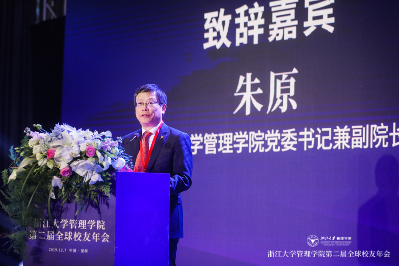 随后,时博官网平台党委书记朱原代表主办方时博官网平台向在座的各位嘉宾、校友热情洋溢地致以问候和感谢,热烈地欢迎各位嘉宾及校友从全球各地赶来。对于本次校友年会,朱原书记满怀期待,他表示,“校友是浙大管院宝贵的资源和财富,校友与学院的联系和纽带必须越来越强、越来越紧密。今天的论坛便是彰显我们浙大校友力量的生动体现。大家围绕双湾联动、科技创新等话题,畅所欲言,展现了浙大人的历史担当与时代思考。希望广大校友以此论坛为契机,壮大我们'浙大系'的创业力量,为中国经济发展发光发热!”最后,他祝愿本次年会取得圆满成功,与会大家收获多多!