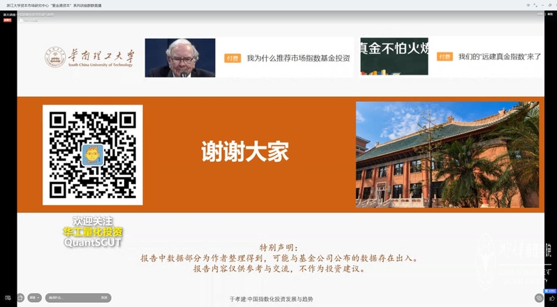 于孝建通过大量的数据收集和分析,确保了报告内容真实可靠性,能够让大家快速了解中国指数化投资的发展与趋势。观众积极提问互动,嘉宾就银行类基金、指数化投资组合、基金定投等问题进行了一一解答。