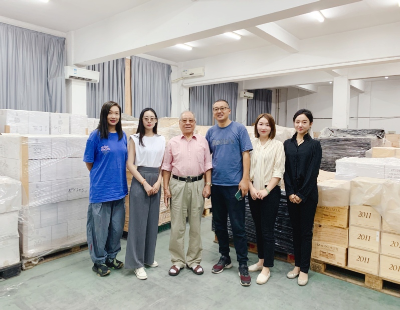 蔡德绍老师与管院一行到达萧山区东方文化创业园时已经快中午,周总早早就在有爬山虎点缀的凯达大楼门口迎接大家,带领大家参观他的仓库以及大楼,在周总有酒柜、有茶室、有周总手抄的般若波罗蜜多心经的办公室,大家相谈甚欢。