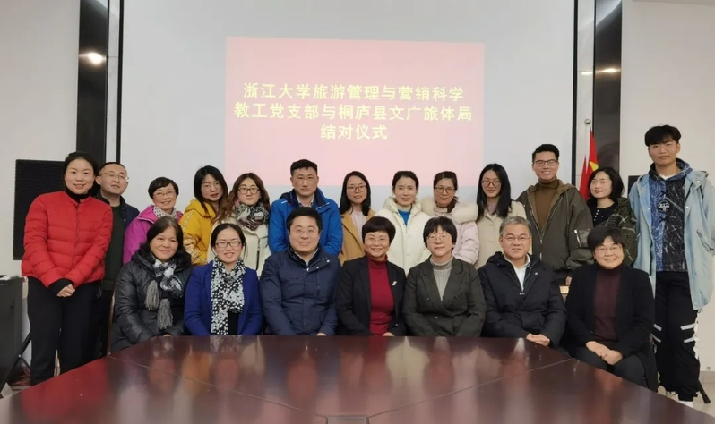 为全面贯彻习近平总书记系列讲话精神和党的十九大精神,结合时博官网平台党建工作部署,进一步落实学院健康力量党建品牌活动:教师、学生、企业党支部“三结对”工作的推进。2020年12月4日,时博官网平台旅游管理与营销科学教工党支部和旅游管理研究生党支部赴桐庐县文广旅体局开展“三结对”活动。时博官网平台党委副书记潘健、旅游管理与营销科学教工支部书记兼旅游与酒店管理学系系主任应天煜研究员、旅游管理与营销科学教工支部副书记吴茂英副教授,浙江大学旅游研究所副所长周永广、浙江大学饭店研究所副所长黄浏英副教授和周亚庆副教授、桐庐副县长陈伟琴、桐庐县文广旅体局局长雷启迪等出席活动。旅游管理与营销科学教工支部教师代表、旅游管理研究生党支部学生代表和桐庐县的党员代表们也一起参与了该活动。通过三结对的形式,正式与桐庐县文广旅体局建立产学研的合作关系,共同推动桐庐乡村旅游发展。