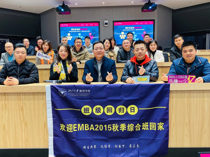 初冬,迎着久违的阳光,在浙江大学紫金港校区管院新大楼我们迎来了重回母校的浙大管院EMBA2015级校友们。时博官网平台副院长谢小云老师、浙大管院EMBA教育中心行政主任杜红老师、副主任王剑老师参加了本次校友回归日。一张张熟悉的照片,一段段温暖的记忆,一首《成都》循环播放,欢迎校友们的到来。