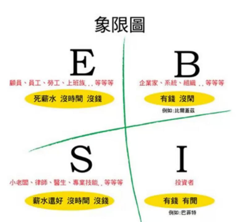 I象限-Investor:投资者,“有钱,有闲”,比如巴菲特。