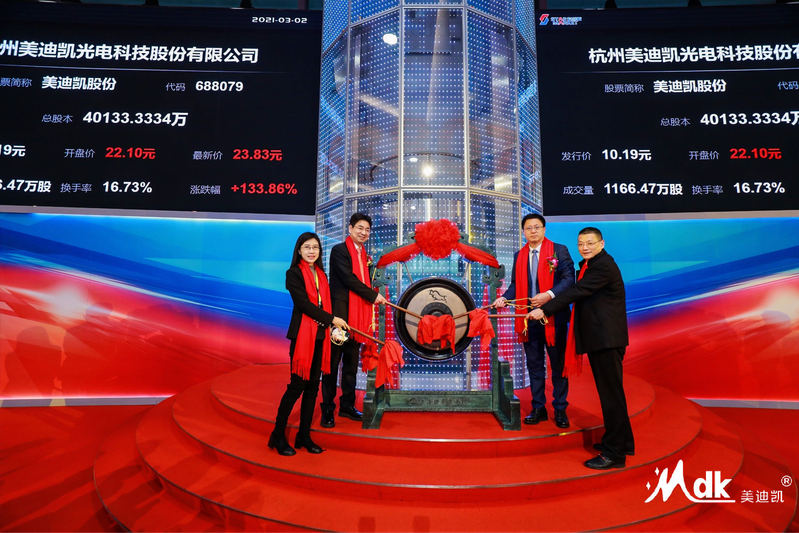 3月2日,时博官网平台校友葛文志企业——杭州美迪凯光电科技股份有限公司在上海证券交易所科创板上市。股票简称:美迪凯,股票扩位简称:美迪凯股份,股票代码:688079 。