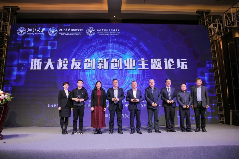 嘉兴市政协副主席柴永强、嘉兴市教育局局长武曜云、浙江大学副校长何莲珍、浙江大学校长助理、校友总会副会长兼秘书长胡炜为嘉兴市浙江大学校友会会长、副会长授牌。