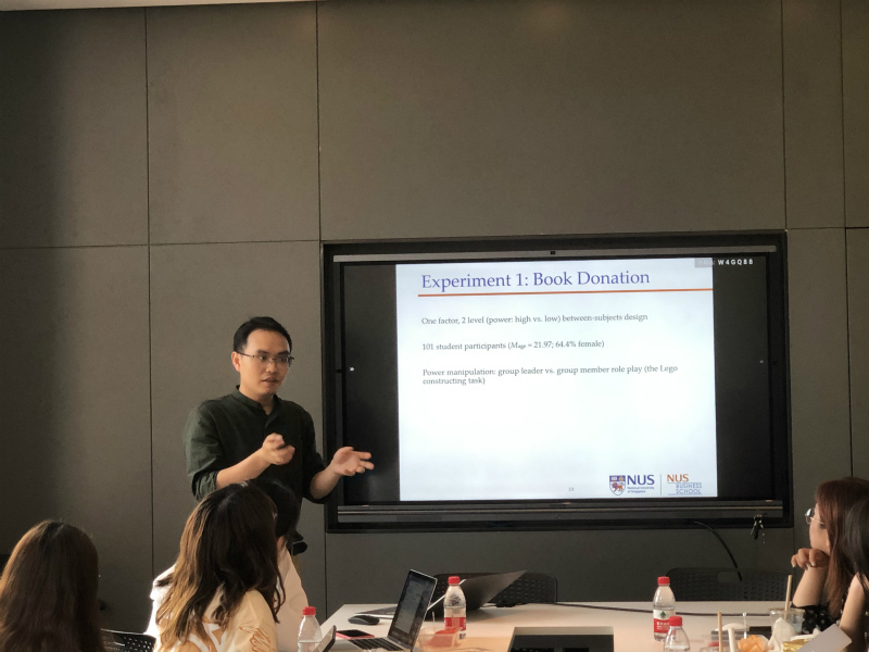 接下来,杨浙帅老师的报告先从介绍自己的求学经历开始,介绍了其在本硕博阶段的经历,给同学们带来了很多启发。之后,杨老师逐渐将报告引入到自己的研究课题“Donate to Be a Hero: Social Power Promotes Prosocial Donation”。杨老师首先抛出研究的问题:权力一直会导致腐败吗?现实当中很多富豪和企业家都乐善好施,那么, 富豪什么时候愿意做更多的钱去帮助别人呢?跟随着问题,杨老师向在座师生介绍了此项研究中的背景理论,帮助别人会让人感觉到快乐,进而提出假设:如果捐赠行为被描绘成完全利他的高尚行为就能为捐赠者带来情绪上的奖励(Emotional Rewards),即我们平时讲的帮助他人让我感到快乐那么高权力感的人是否会愿意放弃一些物质资源换取情绪上的奖励呢?此项研究通过五个不同的捐赠实验,辅以问卷调查最终发现:帮助他人能够带来情绪上的奖励,而那些高权力感的人更愿意放弃自己的物质资源来获得这样的情绪奖励,这在一定程度上解释了为什么高权力的人会更积极地投身慈善事业之中。
