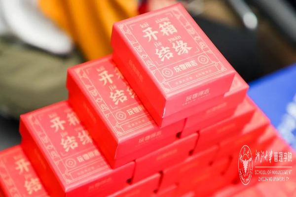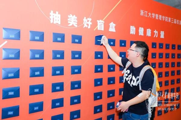 盲盒墙上挂,奖品手中拿。在中央大厅北侧,有一个位置欢笑声特别响亮,引人瞩目。走近一看,原来是“管院盲盒”,校友们一个个拼着手气,互相交流着抽到的惊喜。本次盲盒活动的奖品,均来自于校友企业及学生团队的捐赠。盲盒费用用于捐赠健康力量基金。
