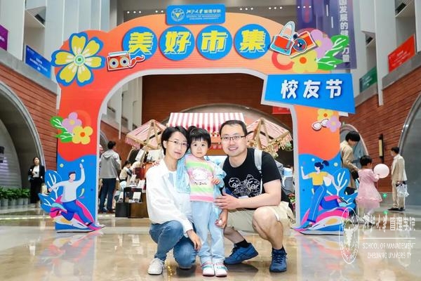 校友们穿梭其中,有的忍不住长长驻留,有的一直交流,伴着音乐与欢笑,市集的热闹给管院新大楼带来浓浓的节日氛围,这是校友欢聚的节日,老友的重逢,家人的齐聚。
