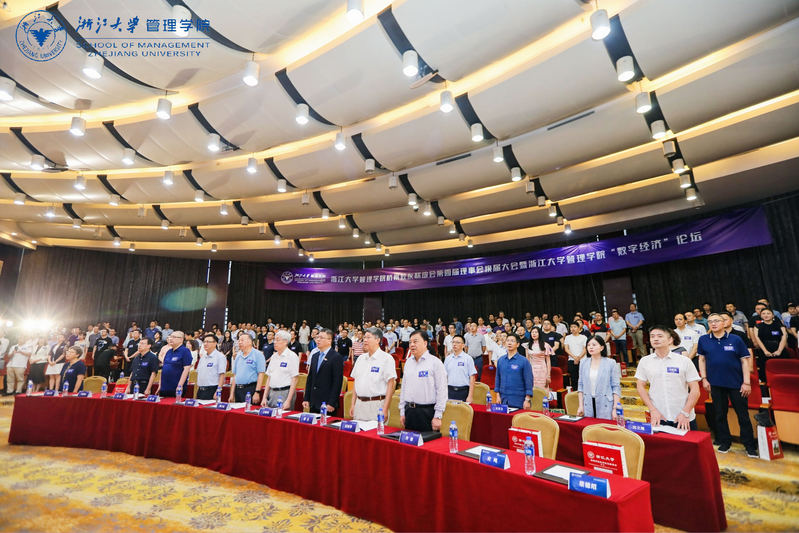 会议进行到此处,杭州校友联谊会理事会换届会议告一段落,蔡德绍老师将主持之棒交给了张四纲会长。活动也进入了最后的高潮——数字经济论坛。