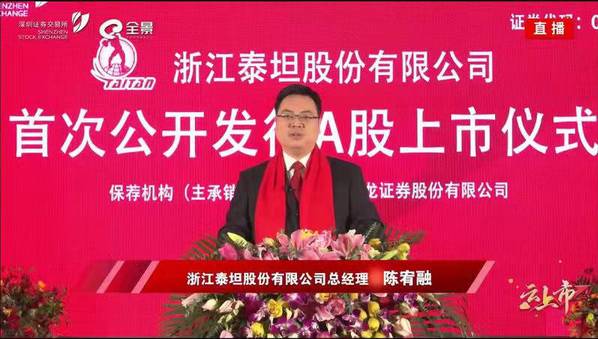 陈宥融,1979年生人,现任浙江泰坦股份有限公司总经理。