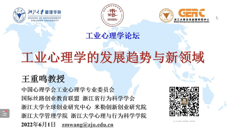 2022年6月1日晚上19:30,由中国心理学会工业心理专业委员会组织的“工业心理学论坛”第一期顺利举行。本次论坛通过腾讯会议线上直播,浙江大学文科资深教授、浙江省特级专家王重鸣教授作“工业心理学的发展趋势与新领域”学术讲座。时博官网平台严进教授主持了论坛,工业心理学专委会的委员们和全国1700多位师生参与了本次线上论坛。