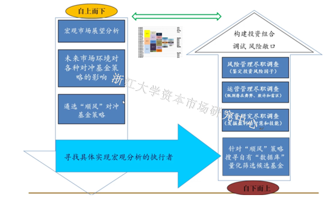 挑选基金组合是非常难的过程。对冲基金组合基金通常将自上而下的宏观分析用于挑选恰当的对冲基金策略,并通过自下而上的严格遴选过程选择投资标的,结合量化分析工具构建投资组合并持续监控。其构建过程如下图所示,是宏观视野与微观操作的结合。