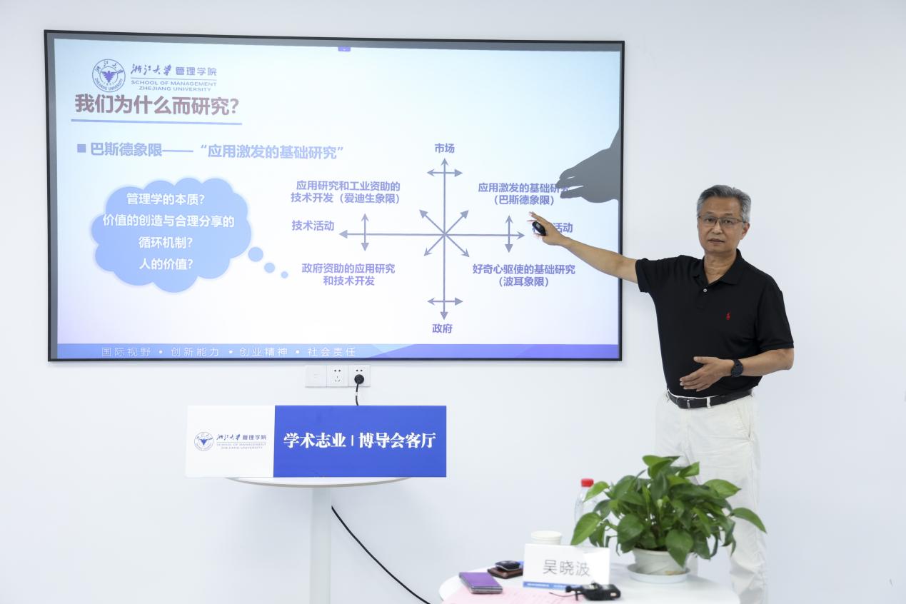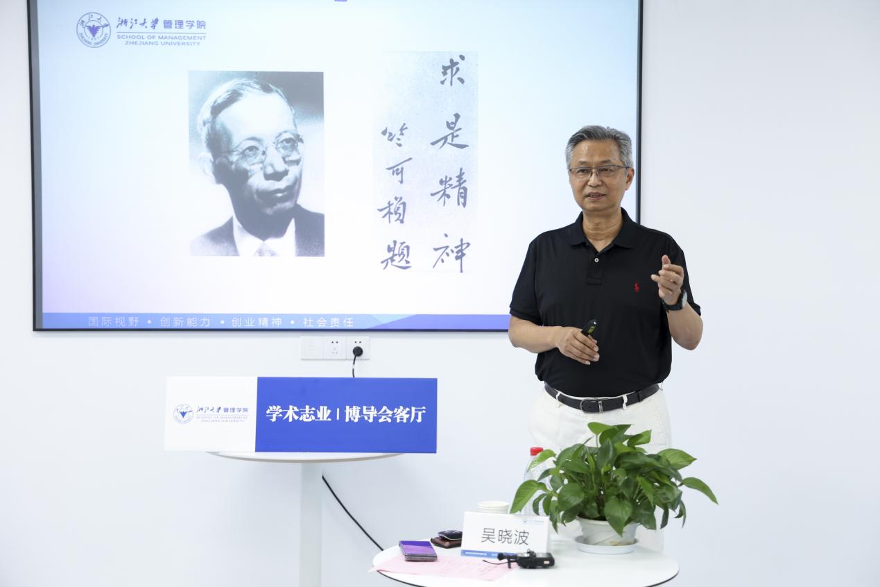 6月26日下午,由管理学院团委主办的“铸魂育人 研路同行”导学文化季——博导会客厅迎来了首期重量级嘉宾,浙江省特级专家,浙江大学社会科学学部主任,时博官网平台博导吴晓波教授。