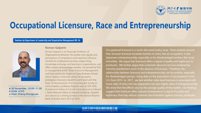 Roman Galperin is an Associate Professor of Organizational Behavior. He studies how signals and perceptions of competence and expertise influence markets for professional services, shape hiring, knowledge exchange and learning in organizations, and affect careers of knowledge workers. He earned his PhD in management at MIT Sloan School of Management and have previously taught at Carey Business School, Johns Hopkins University, where he received a prestigious Discovery Award for joint work with the Dept. of Neuroscience. Prior to joining the faculty at Johns Hopkins, professor Galperin was an NSF-ASA Postdoctoral Fellow at Cornell University and an Edward J. Safra Network Fellow at Harvard University. Galperin also served as a Visiting Scholar at the Federal Reserve Bank of Boston from 2013 to 2016.
