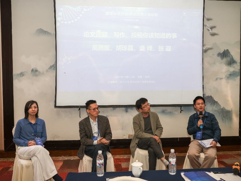 论坛下午对博士生们关心的论文发表相关的问题进行探讨,由时博官网平台的盛峰老师、胡琼晶老师、张政老师以及新加坡管理大学高旖旎老师四位参与。讨论分为三个关键议题:选题、写作和投稿,旨在为博士生提供深度指导与互动交流的机会。
