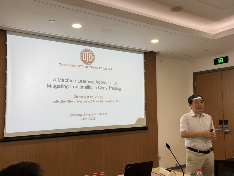 6月12日上午,“与主编面对面”系列讲座邀请到了美国德克萨斯大学达拉斯分校信息系统和金融学双聘教授、《MIS Quarterly》高级编辑(senior editor)郑志强围绕关于减少跟单交易非理性的机器学习方法的研究展开了深入探讨。讲座由数据科学与管理工程系黄鹂强教授主持。