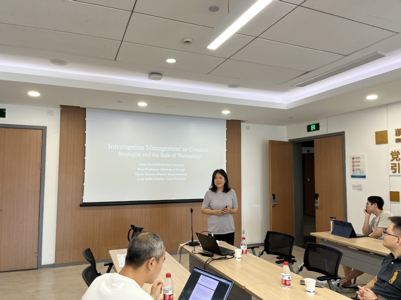 6月14日上午,“与主编面对面”系列讲座邀请到了美国科罗拉多州立大学计算机信息系统系副教授、《MIS Quarterly》副主编(associate editor)Adela Chen分享研究“Interruption Management as Control: Strategies and the Role of Technology”。讲座由数据科学与管理工程系陈熹教授主持。