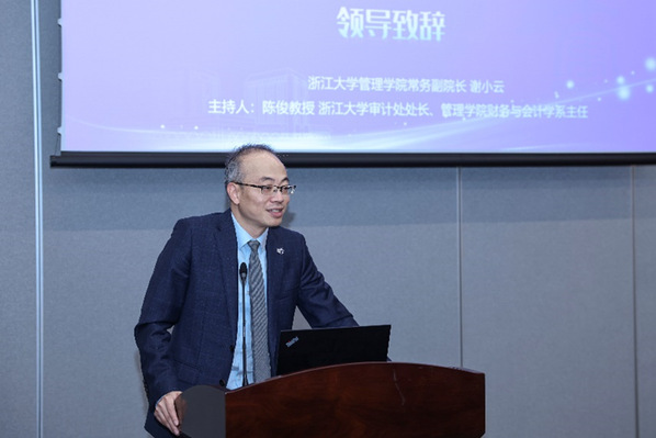 浙江大学审计处处长、管理学院财务与会计学系主任、浙大-华为智能财务联合实验室主任陈俊教授介绍了浙江大学自主研发的全国首个开源财会大模型“智海-大禹”,对其主要功能、整体架构、核心解决方案、评测结果等作了详细说明,并宣布浙江大学“智海-大禹”财会大模型暨赋能智能财会课程建设正式启动,今后将基于“智海-大禹”模型,赋能智能财会课程体系的建设。