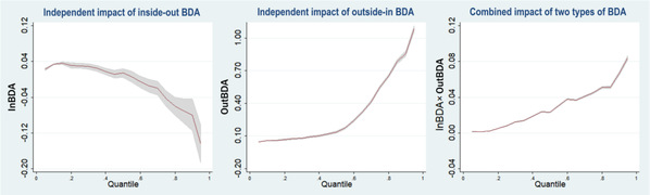 联合影响即同时使用由内而外和由外而内大数据分析时对企业绩效的影响,需要强调的是,这是由两种大数据分析之间的相互作用造成的,而不是单一使用大数据分析所产生的价值的简单叠加。