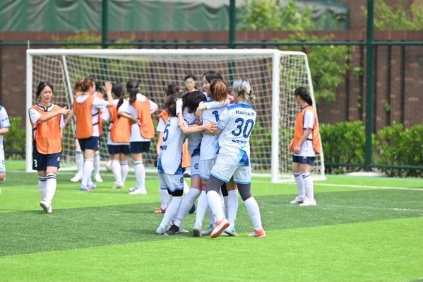 2023年管院女足和蓝田比赛进球后拥抱庆祝