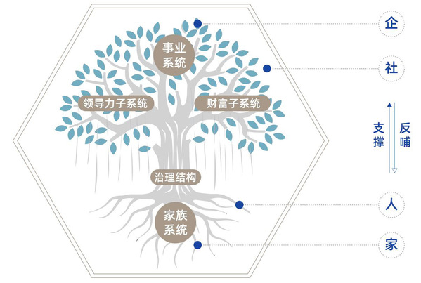 榕树独木成林,象征家族企业可形成适度多元化又有核心竞争力的企业集团,此为榕树的“树冠”;家风和家族精神是榕树的“根部”,为企业可持续发展提供养分;家族和企业的双重治理是榕树的“主干和树枝”,支撑企业稳健生长。