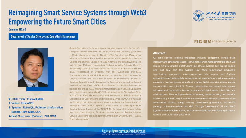 As cities confront complex challenges—including congestion, climate risks, inequality, and governance issues—conventional urban management falls short. We require not only smarter infrastructure, but service systems built around people, data, and trust. This talk explores how Web3 technologies—blockchain, decentralized governance, privacy-preserving data sharing, and AI-driven automation—are fundamentally reimagining the smart city as a value co-creation ecosystem. Moving beyond centralized models, Web3 promotes citizen agency, interoperability, and ethical AI. Through tokenization and trusted data spaces, individuals and communities become co-owners of digital assets, urban data, and public services. They participate directly in planning, decision-making, and even the local economy, transforming from users into co-creators. Real-world cases—such as decentralized mobility, energy sharing, DAO-based governance, and AR/VR planning tools—demonstrate this shift. Through “deepservice”, AI and Web3 together enable adaptive, ethical, and human-centered services, fostering inclusive, resilient, and future-ready cities for all.
